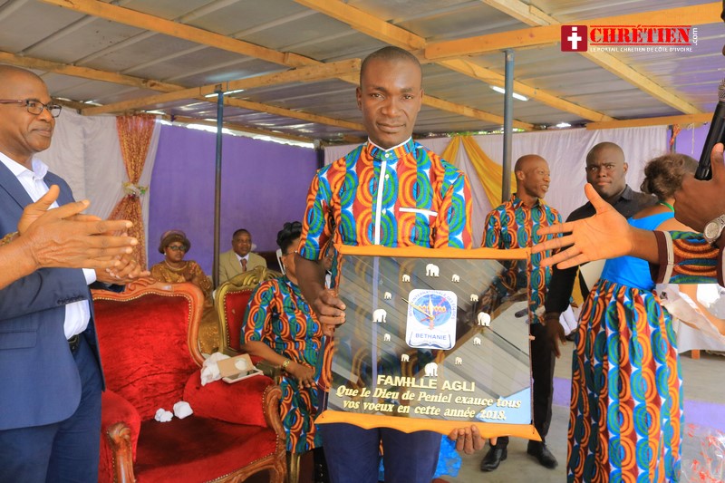 Notons aussi la présence du parrain de cette cérémonie, le directeur de la GEC, Mr Agli Simon. Le parrain au cours de son allocution disait : « Je prends l’engagement de donner 2 millions pour l’achat du terrain, je donne dans chaque zone à partir de Sangon, Jacqueville, Dabou, Toumodi et Yamoussoukro des terrains pour la construction de l’église Béthanie », ce qui a suscité de forts applaudissemnts. Mr Agli Simon parrain de la cérémonie